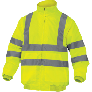 Casaco 2 em 1 corta-vento, repelente de água, forro polar e mangas amovíveis para o primeiro frio e para visibilidade de dia e de noite.