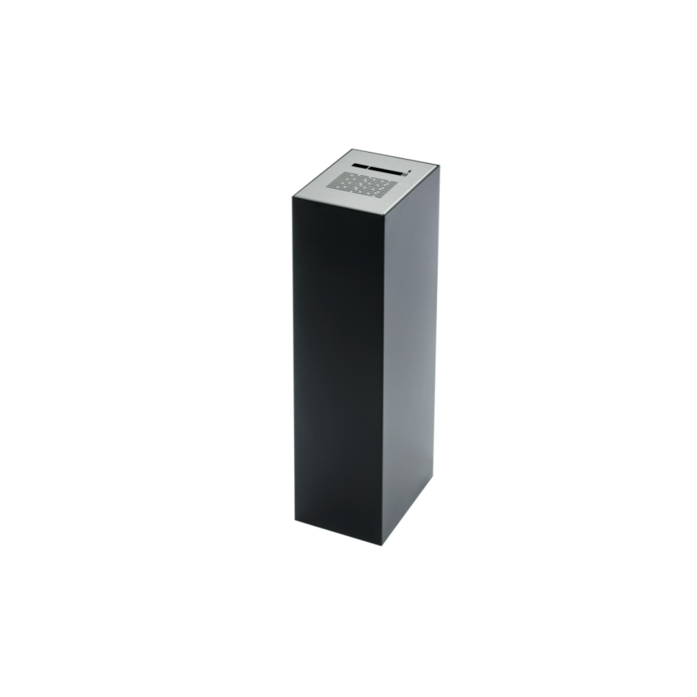 Poste de cenicero acabado en acero inoxidable cepillado o revestido en negro u oro. Fácil de limpiar, con un sencillo sistema de vaciado, y resistente al exterior.