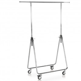 Charriot metálico com barra central e 2 braços extensiveis, 2 rodas de borracha "soltas" e outras 2 com travão.
