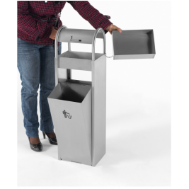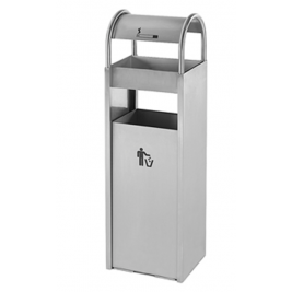 Cenicero de papel con dos aberturas, cuerpo de chapa de acero y cabezal y fondo de acero inoxidable o totalmente de acero inoxidable.