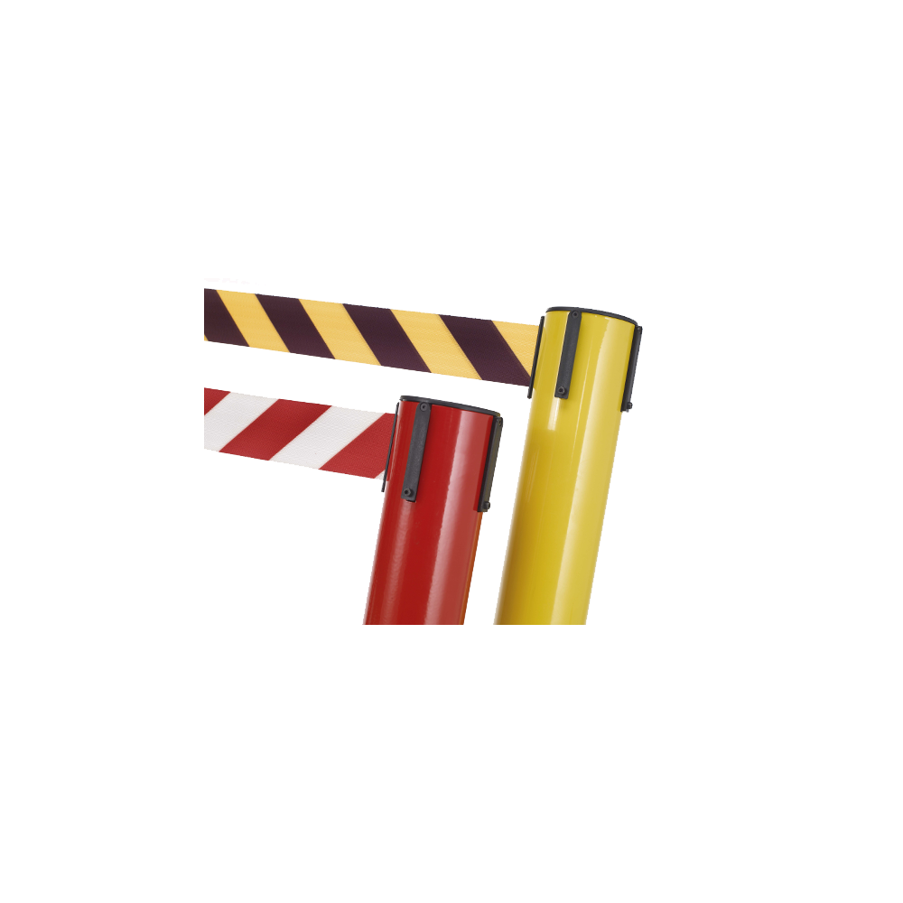Ideal para espaços interiores industriais graças ao seu fabrico em metal fundido e concebidos para um uso diário intenso. O poste e a base estão disponíveis em amarelo e vermelho. As cores das fitas são amarelo-preto e vermelho-branco.