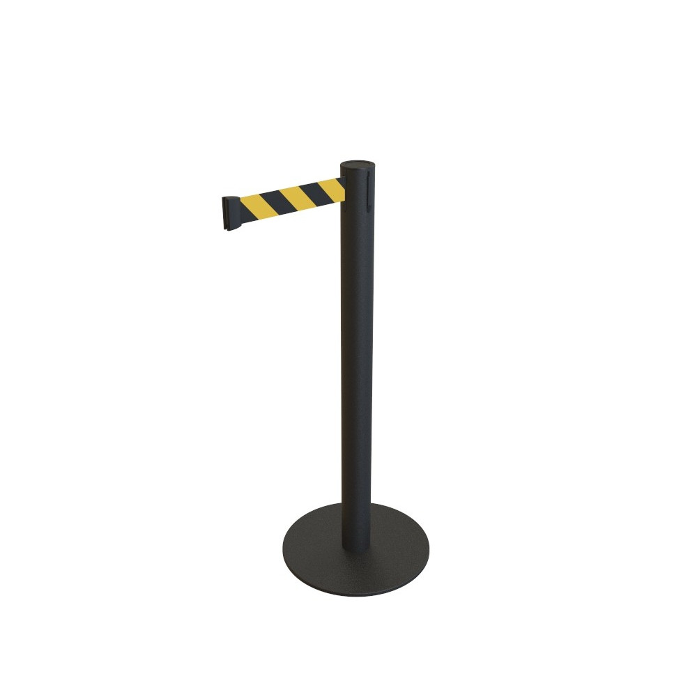 Rouleau mural en plastique noir, avec bande noire, pour relier les barrières de délimitation à 1 bande, 2 bandes et 1 bande, avec base à clipser. Il peut être utilisé sans barrière de délimitation dans les applications mur à mur plus étroites (par exemple, les couloirs), auquel cas le support mural en plastique doit être appliqué pour installer la bande rétractable.