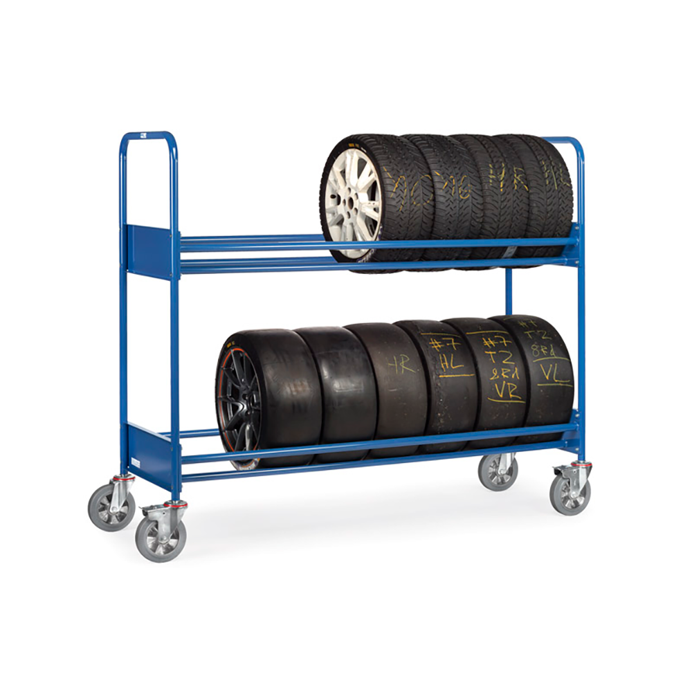 Carros Rebatíveis com 1 guarda e Carros Mesa com prateleiras. Estrutura em aço. Facilidade de condução. Leves e práticos. Rodízios (2 fixos e 2 giratórios com travão) satisfazem a Norma EN 1757-3.