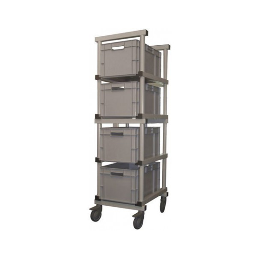 Base metálica rolante com alça para caixas EUROBOX | Dim.: 700x400x925h mm. | Cor: cinza/vermelho