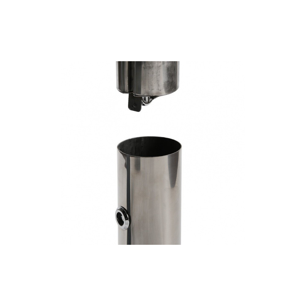 Poste cinzeiro com acabamento em aço inoxidável escovado ou revestido em preto ou dourado. Fácil de limpar, com sistema de esvaziamento simples, e resistente ao exterior.