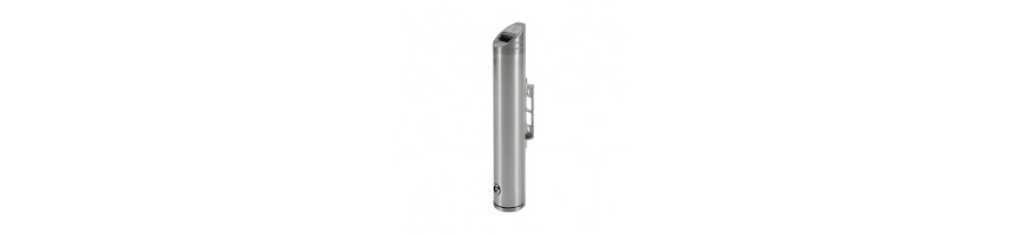 Gama de cinzeiros para exterior. Para aplicar na parede ou no chão, sendo que todos ele estão equipados com fechadura. Ideal para as entradas dos edifícios públicos ou privados onde não está permitido fumar.