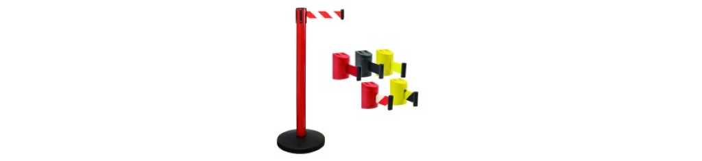 Enrolador de parede em plástico, com fita de 5m de comprimento, para união às barreiras de delimitação de 1 fita.