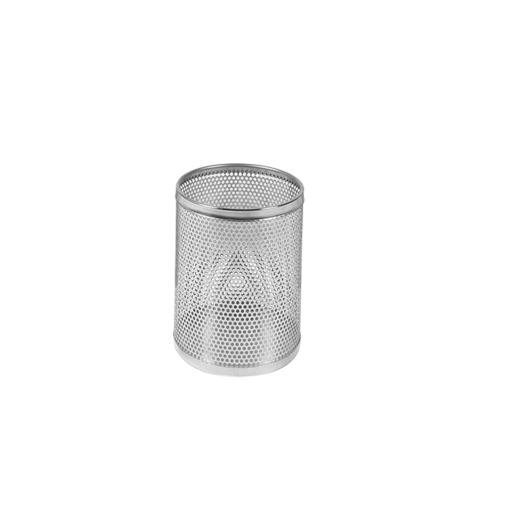 Papeleira quadrada de chapa perfurada totalmente em aço inox ou aço.