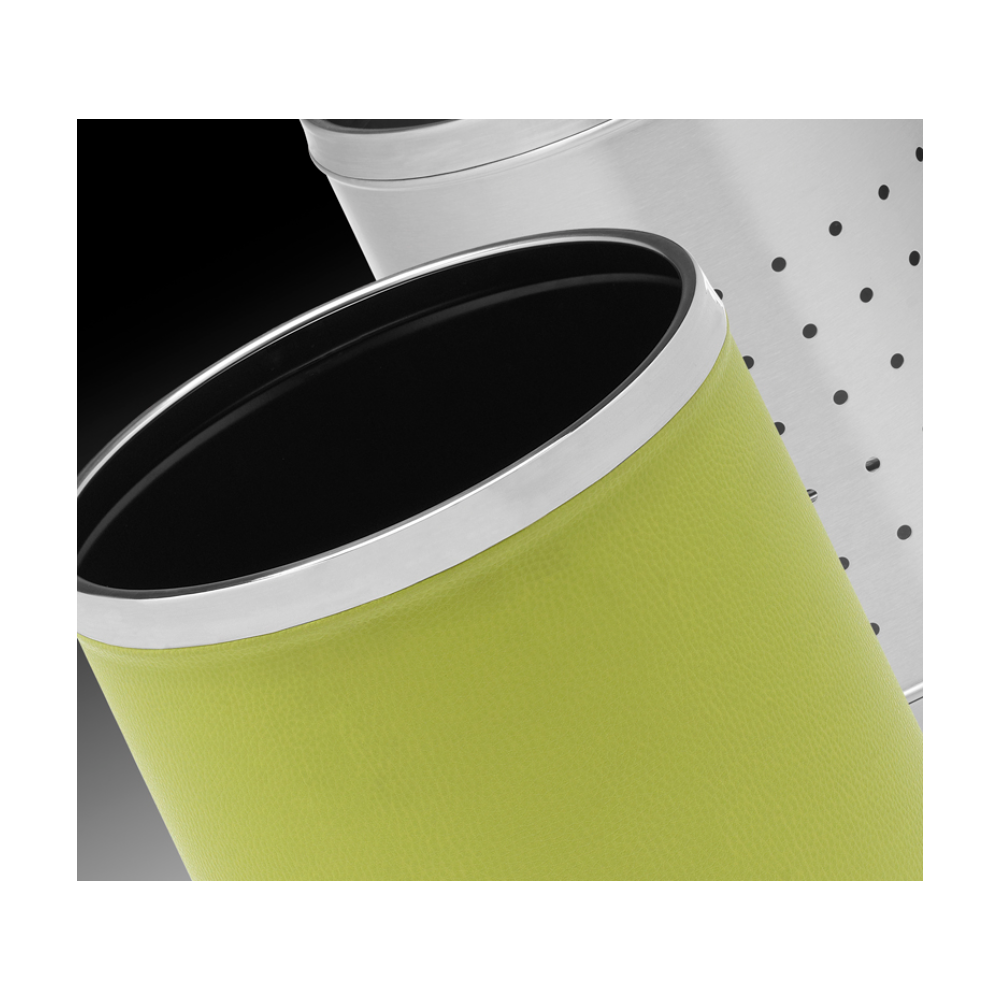 Eco – ponto de 3 entradas de reciclagem seletiva, totalmente construído em aço inox AISI 304 com corpo revestido a vinil e fundo e cabeça em aço inox polido. Estrutura em varão no interior para suspender os sacos plásticos. Apoios de borracha ao solo na parte inferior do ecoponto.