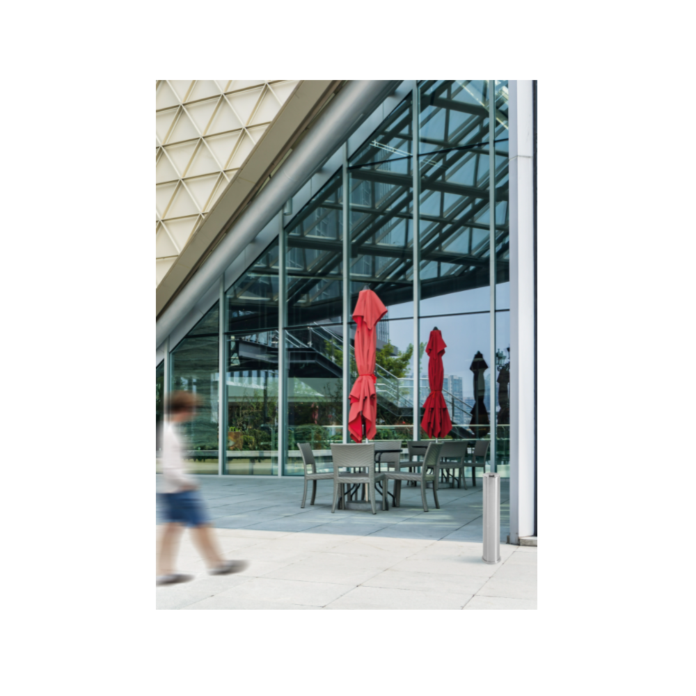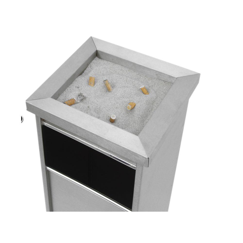 Gama de cinzeiros para exterior. Para aplicar na parede ou no chão, sendo que todos ele estão equipados com fechadura. Ideal para as entradas dos edifícios públicos ou privados onde não está permitido fumar.
