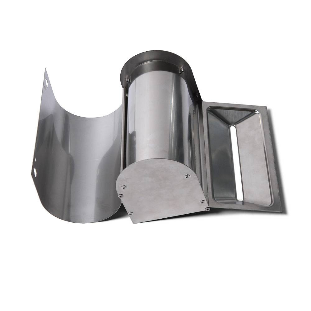Pequeno cinzeiro de parede em aço inoxidável. Bastante discreto, durável e resistente à corrosão e aos elementos.