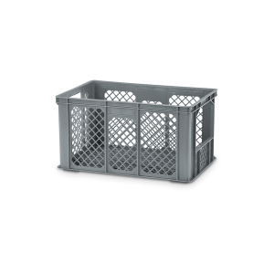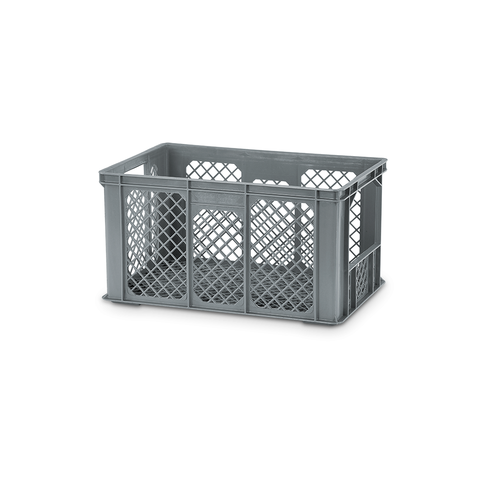 A caixa 2502, com paredes perfuradas e fundo liso, é produzida em polietileno de alta densidade alimentar estabilizado contra radiações UV.