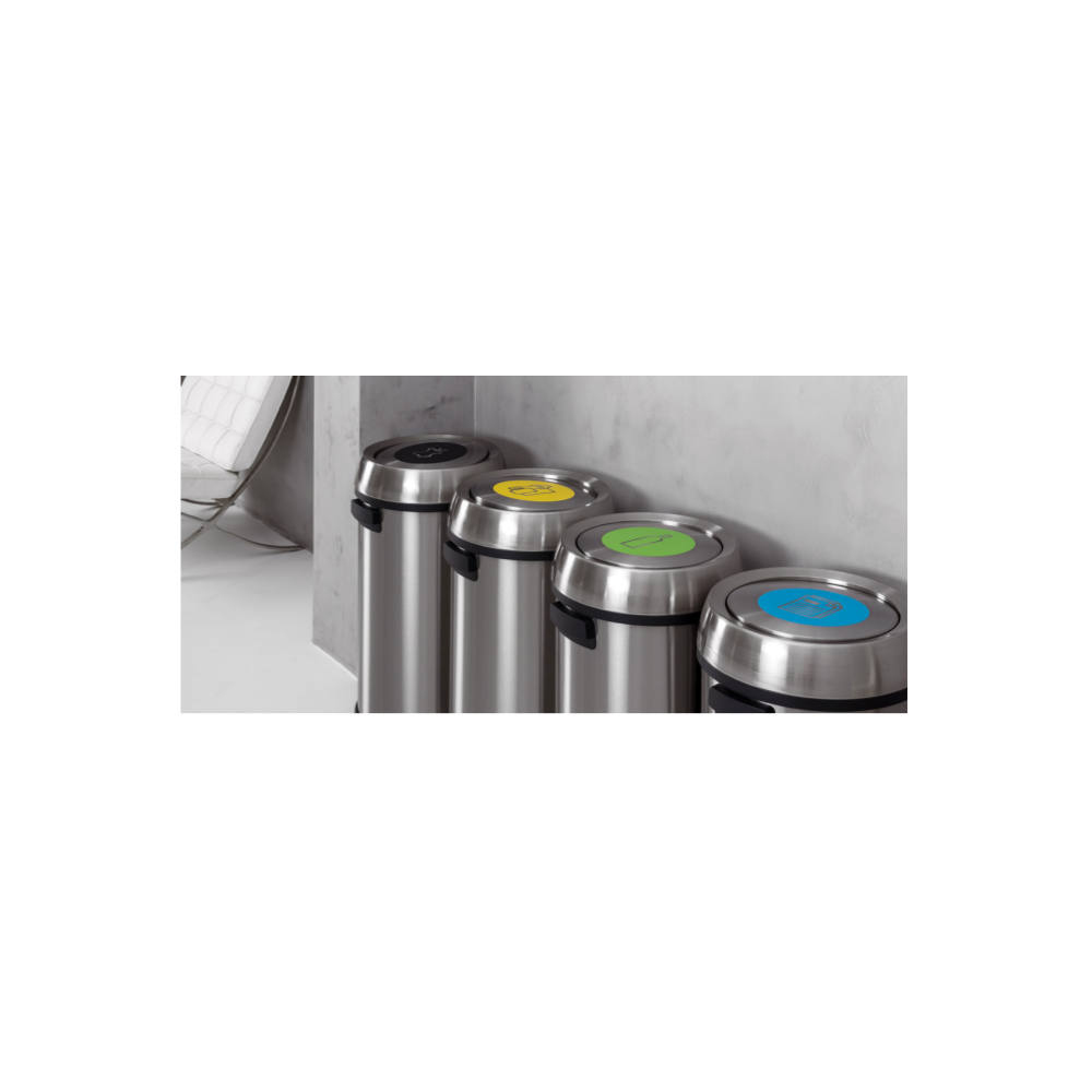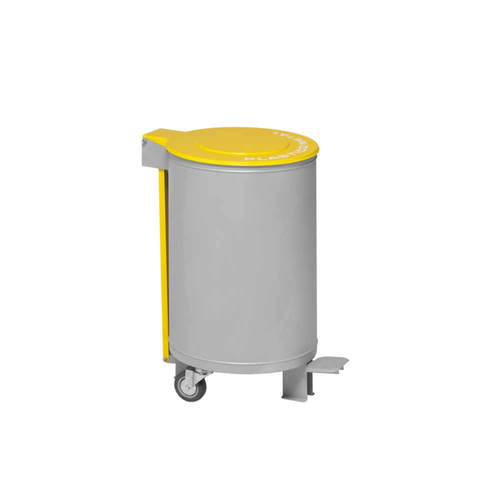 A tampa e o pedal em cores intuitivas facilitam a separação de resíduos e identificam o tipo de material • vidro, papel ou plástico.