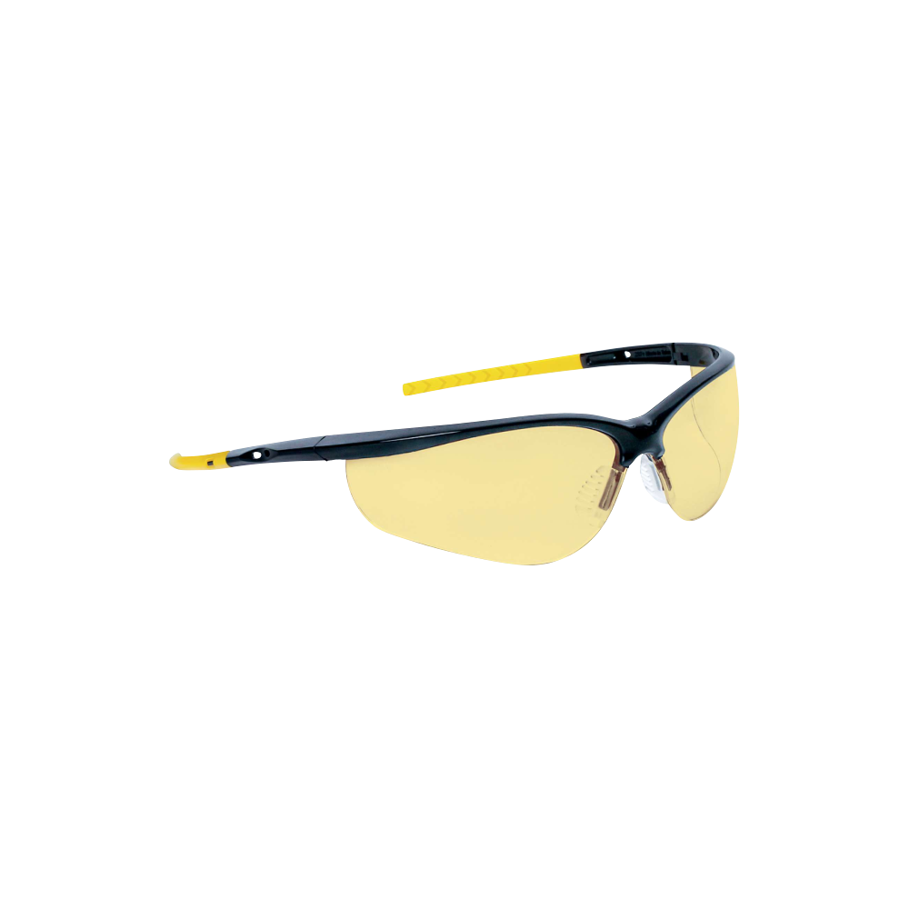 Óculos de proteção amarelos com proteções laterais, ideais para condução noturna.