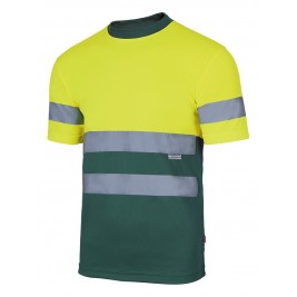 Colete de alta visibilidade com fitas refletoras. Decote em bico e fecho de velcro adaptável. Duas fitas refletoras no peito e nas costas. Acabado com bainhas em contraste.